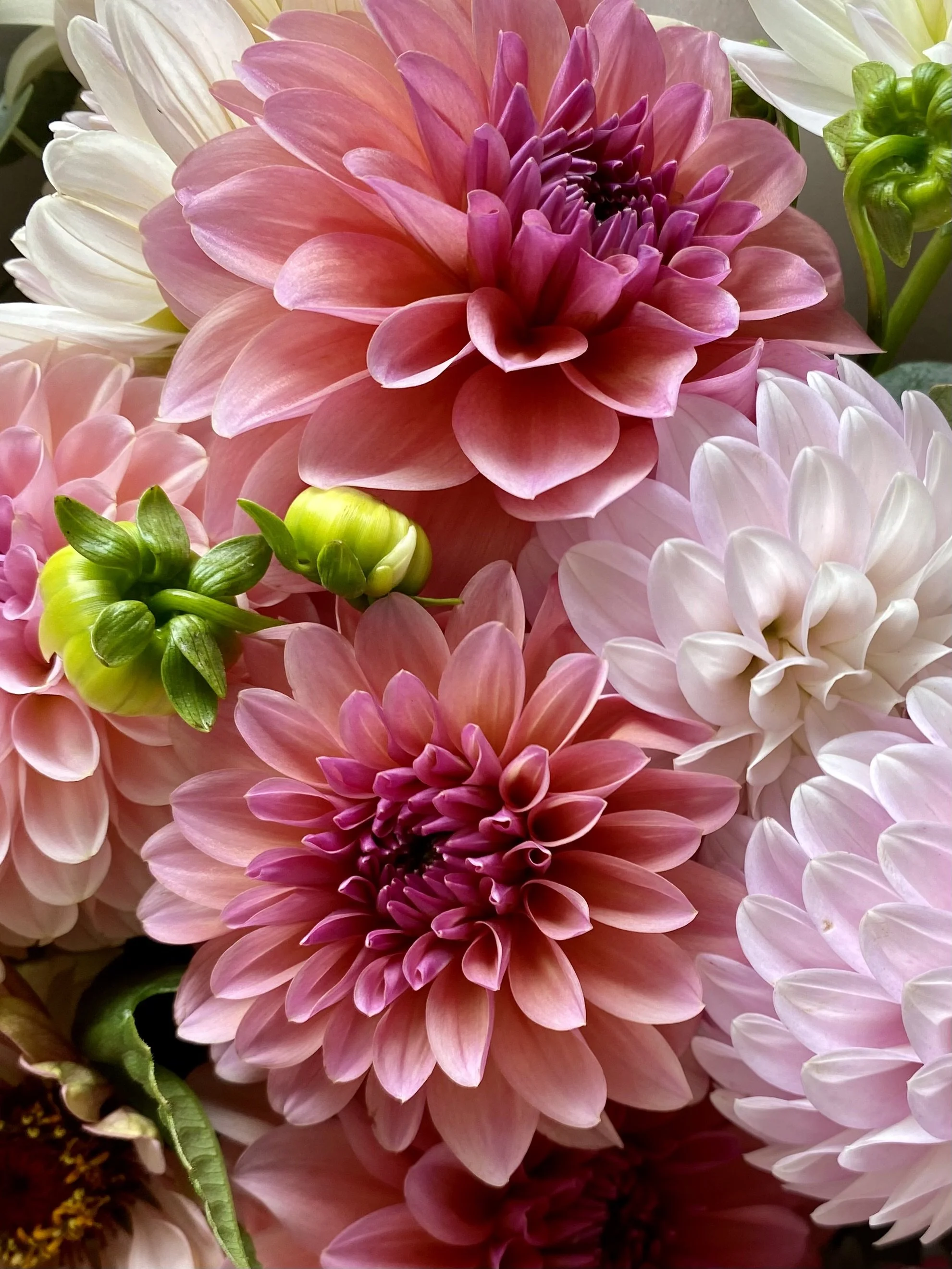 Peachy- salmon blooms on a healthy bushy plant with darker stems. Flowers consistently and the blooms make great cut flowers.